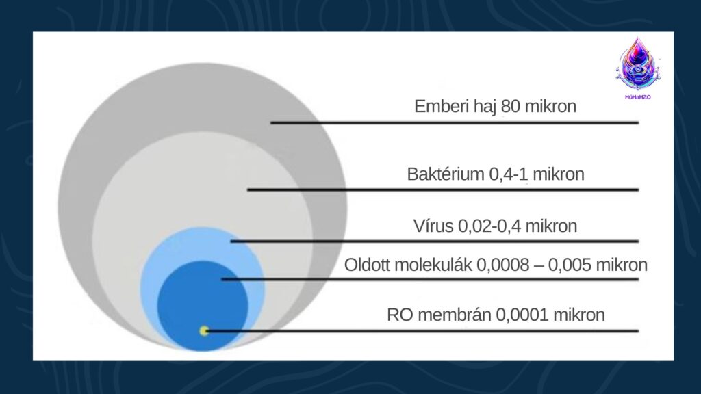 A fordított ozmózis egy olyan víztisztítási eljárás, amely során a vizet nyomás alatt egy félig áteresztő membránon vezetik át. Ez a membrán rendkívül apró, körülbelül 0,0001 mikron méretű pórusokkal rendelkezik, amelyek képesek eltávolítani a vízből a legtöbb oldott szilárd anyagot, mikro- és nanoműanyagot, baktériumot, vírust és egyéb szennyeződést .